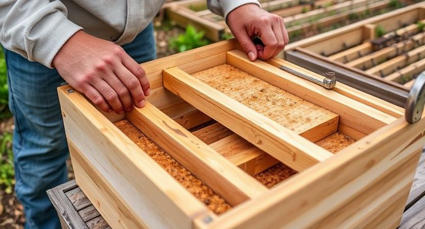 Next, you will need to attach wooden cleats to the bottom board to create space for airflow. These cleats will elevate the bottom board slightly off the ground, allowing for proper ventilation within the hive. Secure the cleats to the edges of the bottom board using nails or screws, making sure they are evenly spaced to provide adequate support. Once the cleats are in place, your bottom board is ready to be installed as the base of your beehive, ensuring a solid foundation for your bees to thrive.