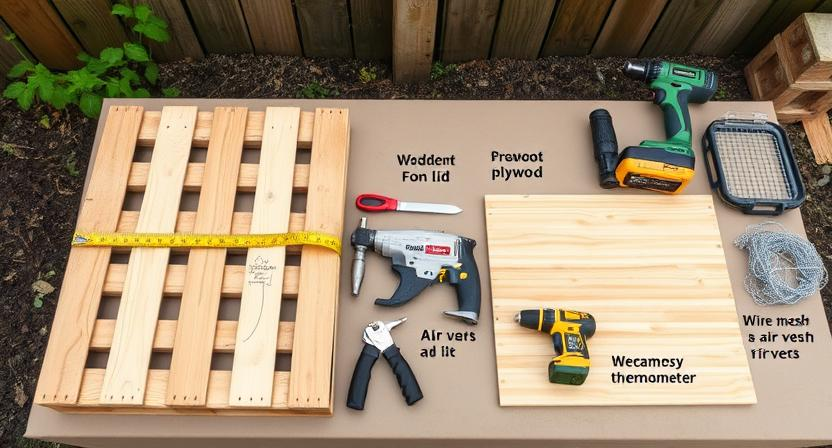 To build a compost bin, you will need the following materials: four wooden pallets of the same size, a tape measure, a saw, hammer, nails, hinges, and a drill. These basic materials will provide you with a sturdy foundation to create your composting system. Make sure the pallets are in good condition and free from any harmful chemicals or treatments that could potentially contaminate your compost.